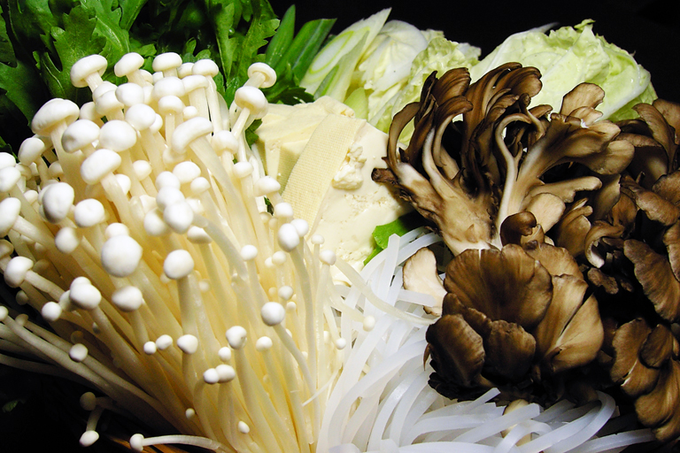 白菜・菊菜・えのき・舞茸・マロニー・豆腐など。