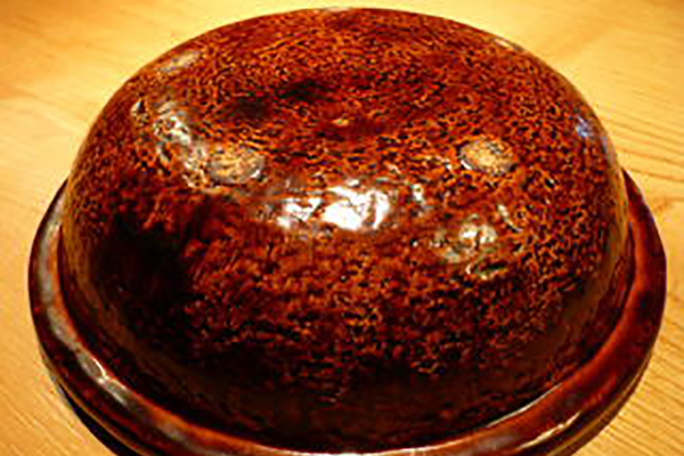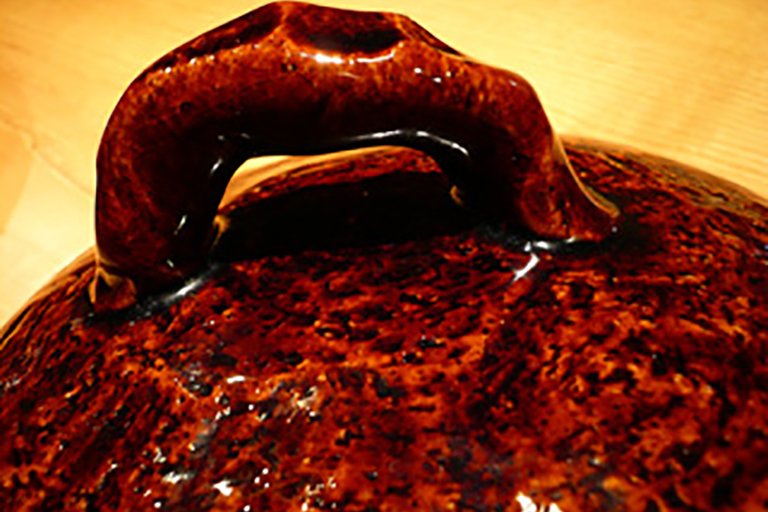 大・中鍋は、落ち着いた「あめ釉」(写真)